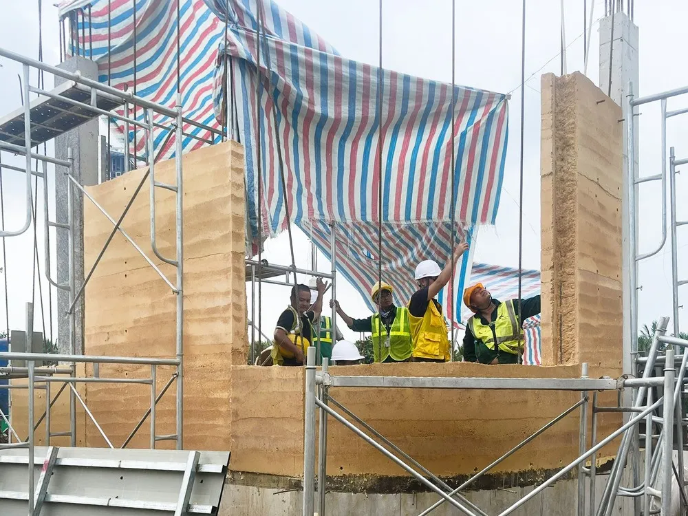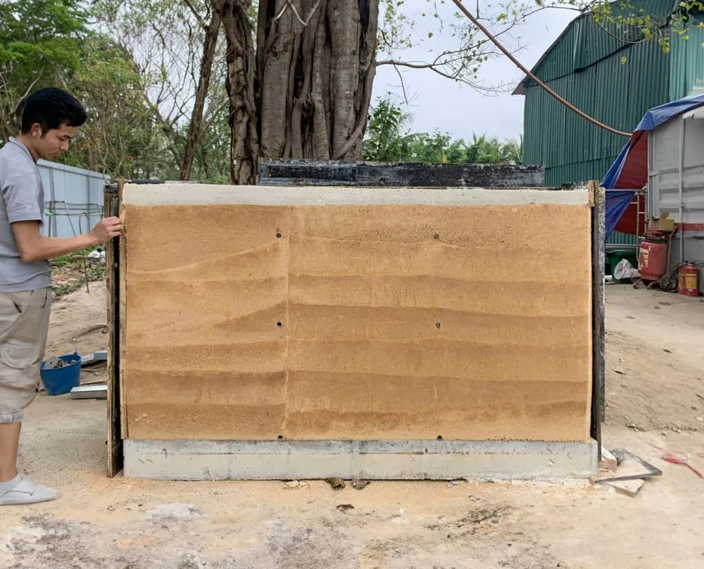 Originally proposed to reduce the climate footprint of the house, rammed earth was later embraced for its tactile and aesthetic qualities. Eden Villa pioneers the use of this construction technique in Vietnam at an architectural scale. While rammed earth has been used historically in mountain villages, the method has largely faded from modern practice. This is the first project in Vietnam - and one of the largest in Southeast Asia - to use rammed earth within building code, with a custom mix developed specifically for the villa.