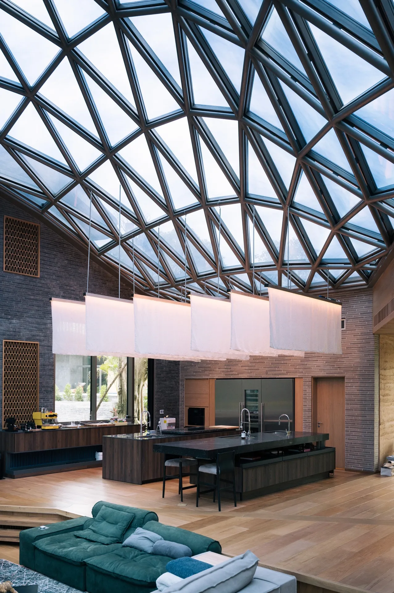 Beneath the main dome lies a large open kitchen directly linked to the living room, yet offset by a three-step drop - creating a subtle, tactile shift in space and atmosphere.