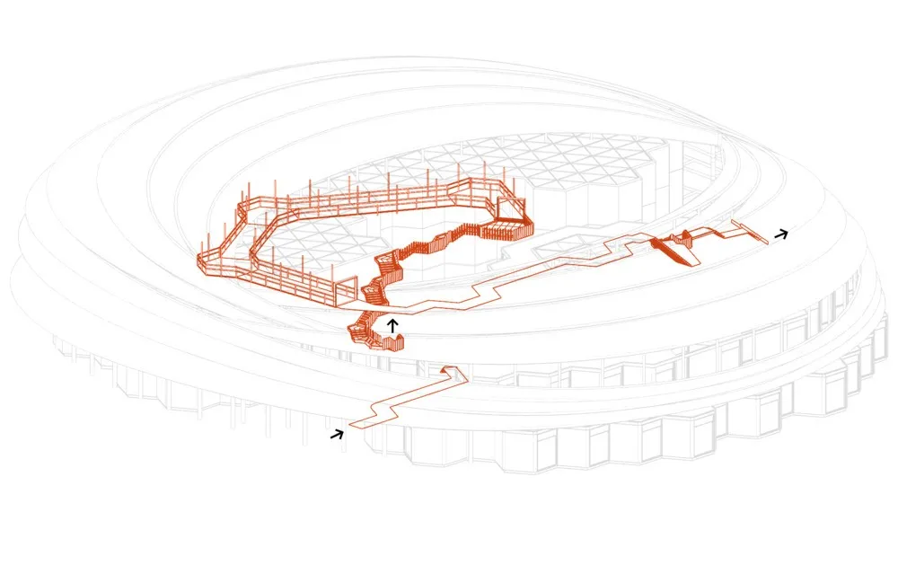The Generational Path connects all public spaces within the new development. It offers three interconnected routes, catering to the preferences of each family member. These paths occasionally diverge, providing different elevations, lengths, and activities inspired by Vietnam's national parks.