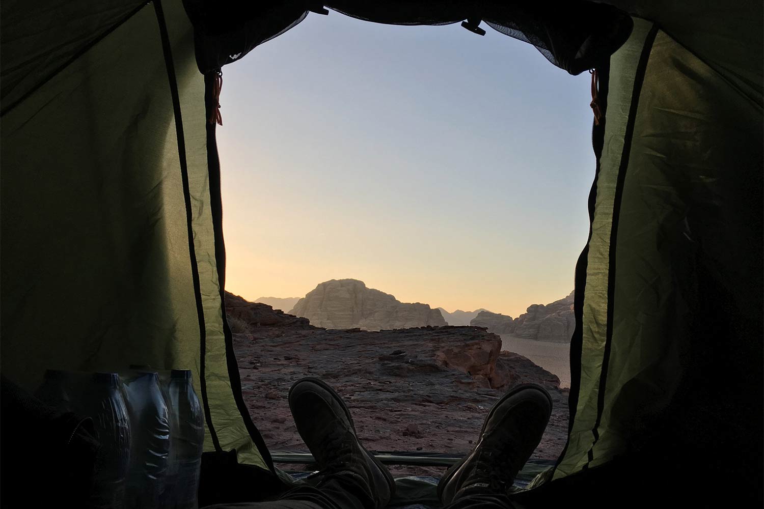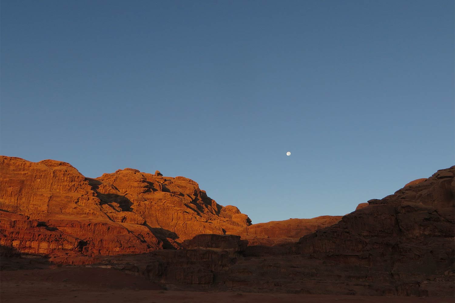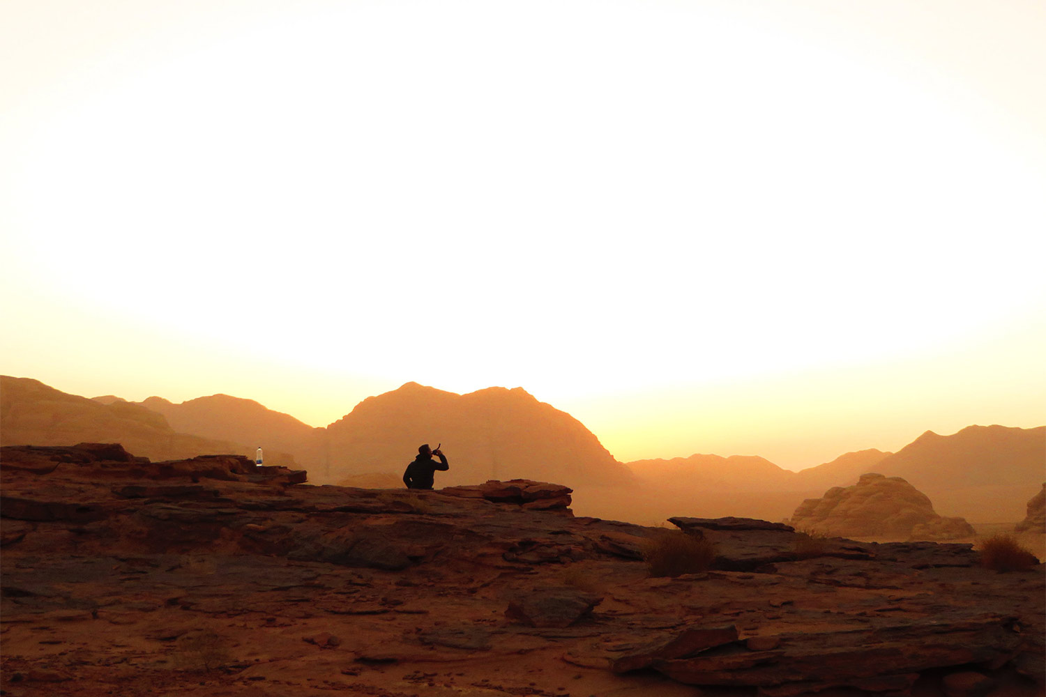 "After a week in the desert, the redness of the sand seemed to fade away. It wasn't until I unpacked a new bottle of water, which seemed to shine with an impossible clear blue colour - that I realized my eyes had completely adjusted to the red sand"